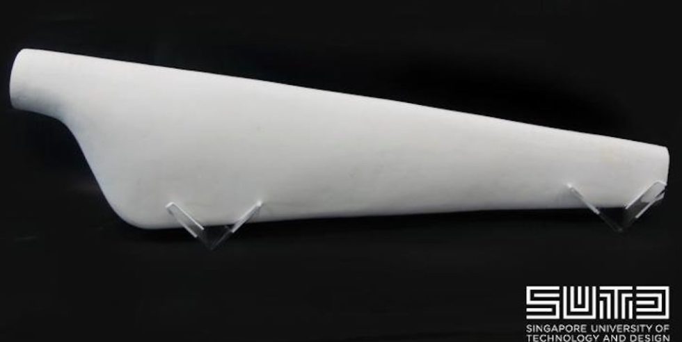 Forschern in Singapur ist es erstmals gelungen, ein großes Bauteil aus Zellulose und einem natürlichen Kleber per 3D-Druck herzustellen. Es ist so fest, dass es als Schaufel in einer Turbine eingesetzt werden kann.