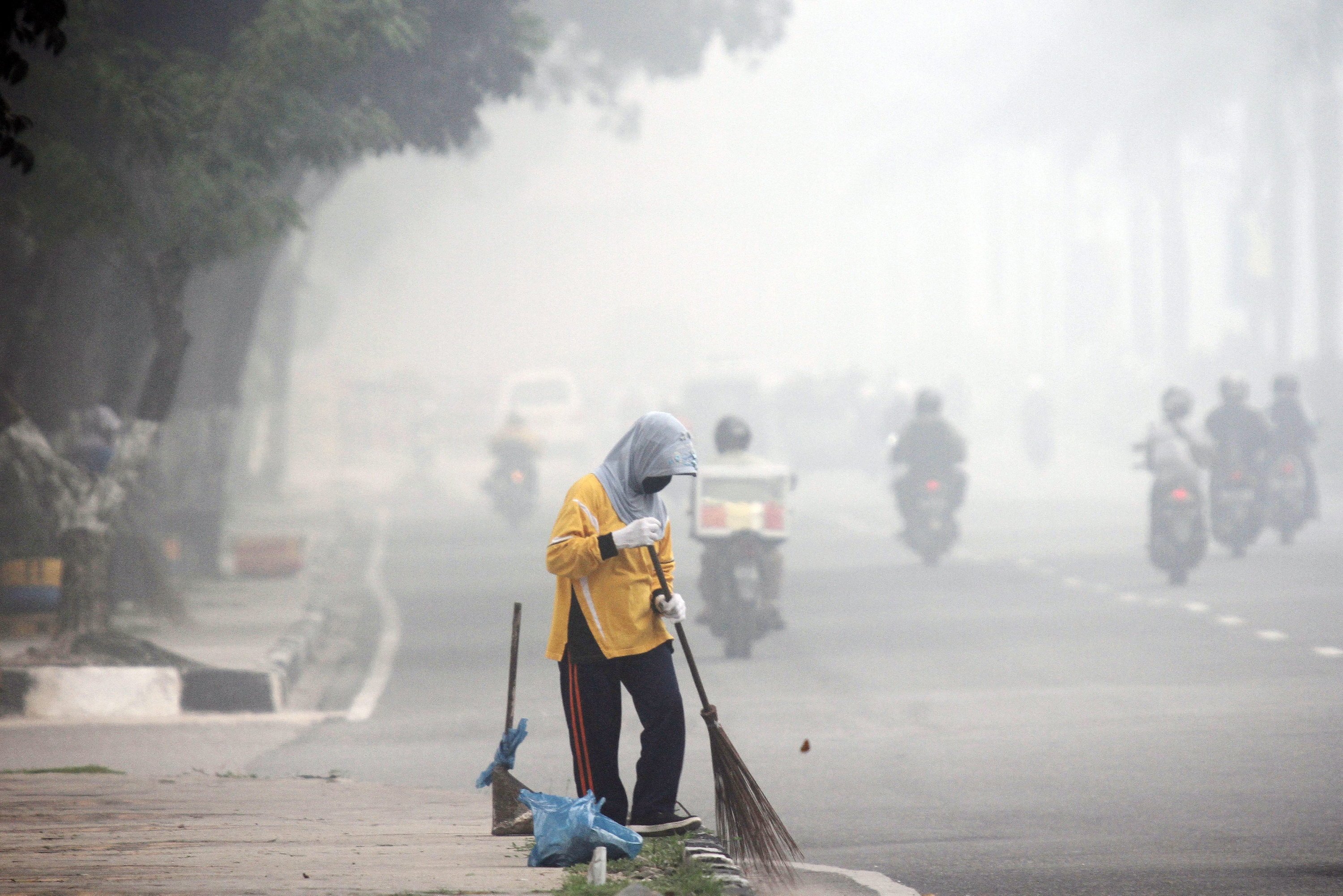 Gelber Dunst in Indonesien: Seit mehr als drei Monaten ist die Luft wegen wilder Feuer verschmutzt. Inzwischen werden Kriegsschiffe eingesetzt, um Gefährdete zu evakuieren.
