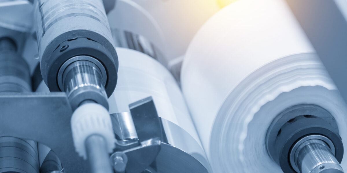 Kunststofffolie in einer Maschine: Beim Verpackungsmaterial gibt es einige Potenziale Ressourcen einzusparen, wie ein Onlinecheck des VDI ZRE zeigt.