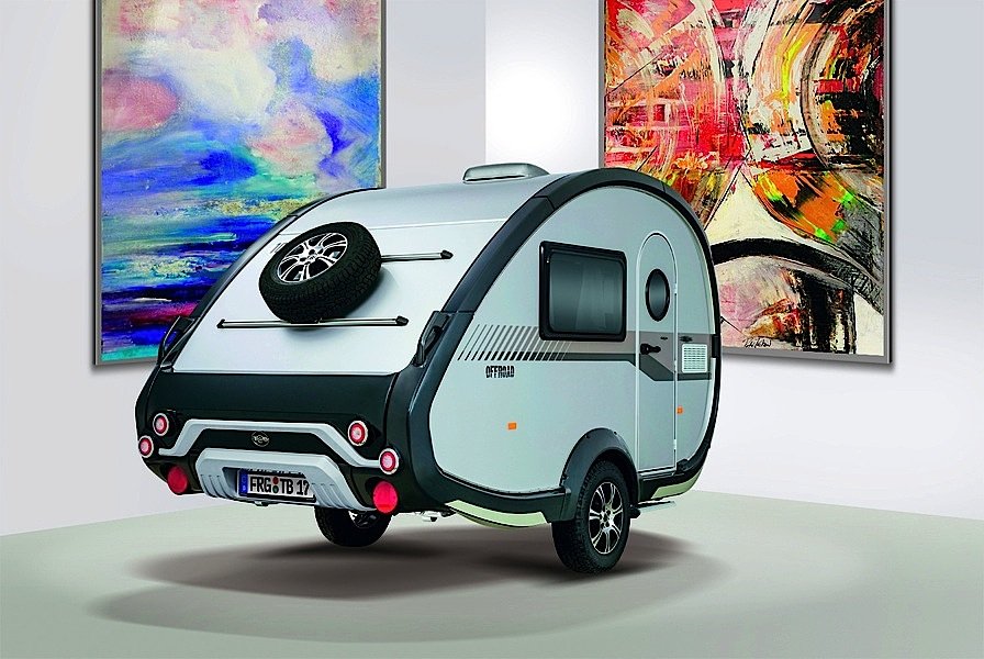 Und der eigene fahrende Campinguntersatz lässt sich noch günstiger realisieren. Knaus Tabbert zeigt auf der Messe den T@B 320 RS – einen kleinen tropfenförmigen Caravan, den selbst ein Kleinwagen, etwa ein VW Polo, ziehen kann. Der Wohnwagen im kultigen Retrolook mit Bullauge in der Eingangstür bietet einen gemütlichen 6,12 m2 großen Innenraum mit Sitzecke, Küche und Kühlschrank.