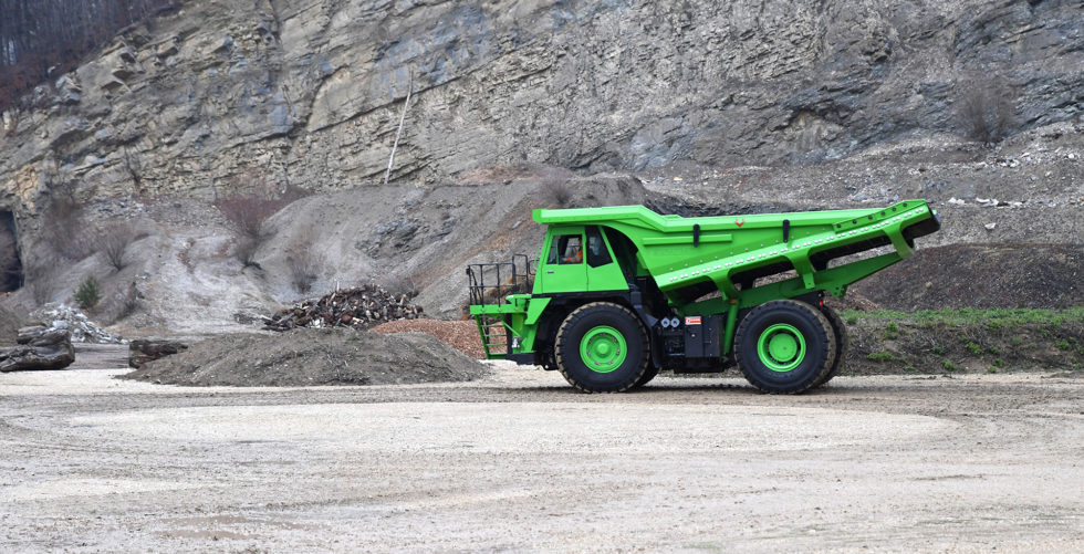 In einem Steinbruch in Péry im Berner Jura ist das größte, schwerste und stärkste batteriebetriebene Elektroauto der Welt seit ein paar Tagen im Einsatz. Der riesige Muldenkipper transportiert aus einer hochgelegenen Abbaustelle Kalk- und Mergelgesteine ins Tal. Wenn er voll beladen ist, also 65 Tonnen Gestein auf dem „Buckel“ hat, wiegt er stolze 123 Tonnen. Bei der Talfahrt produziert der Synchronmotor, der in diesem Fahrzustand als Generator arbeitet, so viel Strom, dass es für die anschließende Bergfahrt reicht. Das haben jedenfalls die Entwickler aus Industrie und Forschung so errechnet. Jetzt muss sich die Technik in der Praxis bewähren.