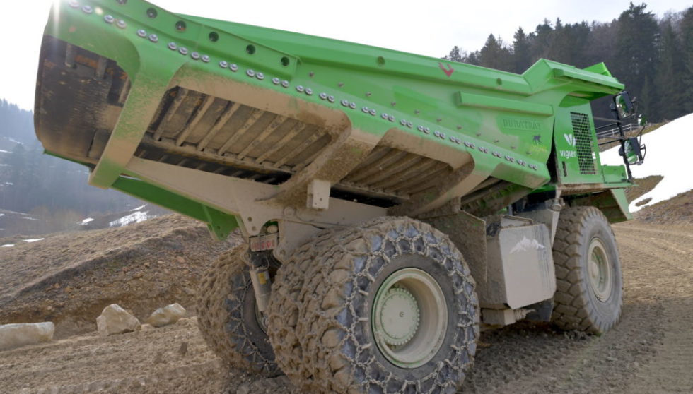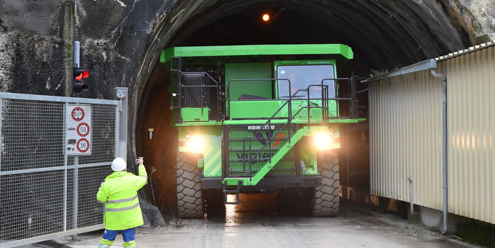 Wenn dieser Muldenkipper voll beladen ist, wiegt er 123 Tonnen. Fährt er ins Tal, erzeugt er so viel Strom, dass er mit geladener Batterie wieder hinauf zur Grube fahren kann. Alles emissionsfrei. Damit ist der Muldenkipper aus der Schweiz der größte rein elektrische Muldenkipper der Welt.