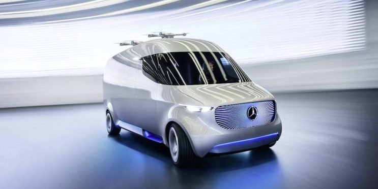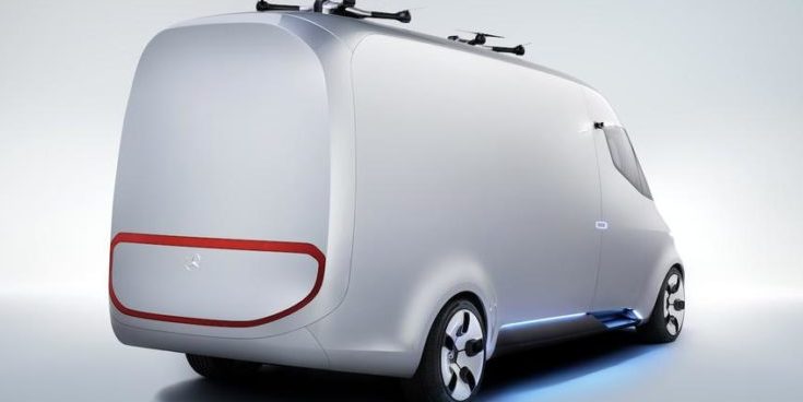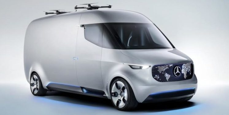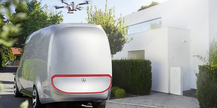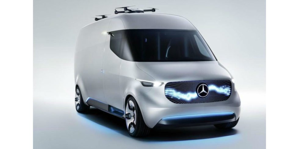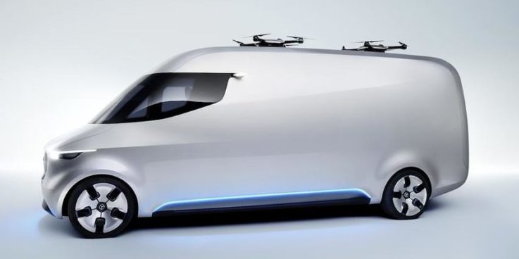 Der Clou ist das von Daimler kokett Boden-Luft-Bündnis genannte Drohnen-System. Auf dem Dach des Vans sind zwei elektrisch angetriebene Drohnen des amerikanischen Herstellers Matternet platziert, die Frachten bis zu 2 kg in einem Radius von 10 km ausliefern können. Das intelligente Bordsystem weiß, wann welches Paket ausgeliefert werden muss.