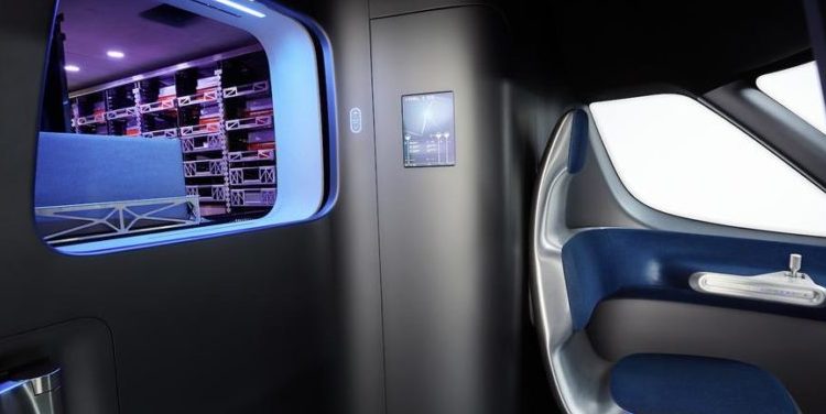 Am Armaturenbrett bekommt der Fahrer die Informationen zum aktuellen Drohnenflug angezeigt. Auch die Routenplanung hat er über das Dashboard immer im Blick. Selbst der Fahrzeugboden im Vision Van dient der Kommunikation. Dank eines speziellen Effekts scheinen LED-Anzeigen im Edelstahlboden, die dem Fahrer signalisieren, ob sich Fußgänger oder Fahrradfahrer nähern.