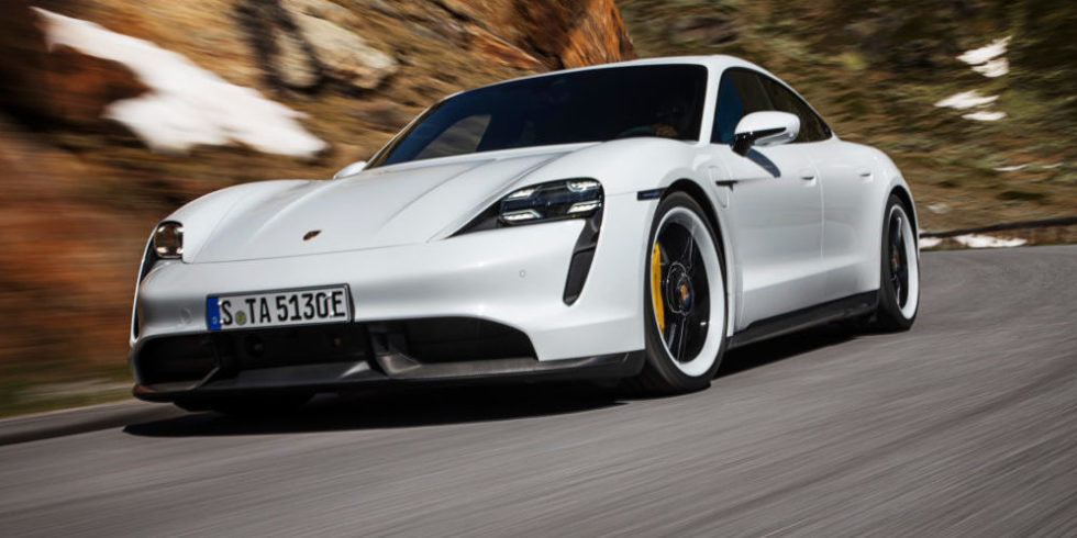 Der rein elektrisch betriebene Porsche Taycan bietet ein berauschendes Fahrerlebnis. Er ist einer der ersten Modelle, in dem die 800-Volt-Technologie in Elektroautos zum Tragen kommt und landet damit einen Volltreffer. In nur 2,8 Sekunden beschleunigt das Topmodell von 0 auf 100 Kilometer pro Stunde. Die 79,2- bis 93,4-Kilowattstunden-Batterie und der 225- bis 270-Kilowatt-Motor stacheln den Sportwagen zu einer Spitzengeschwindigkeit von bis zu 250 Kilometern pro Stunde an. Dabei leidet nicht einmal die Reichweite, die laut Hersteller zwischen 407 und 463 Kilometern liegen soll. Deshalb ist der straßentaugliche Rennwagen auch für längere Strecken bestens geeignet. Der aktuelle Verkaufspreis liegt bei rund 105.600 Euro.