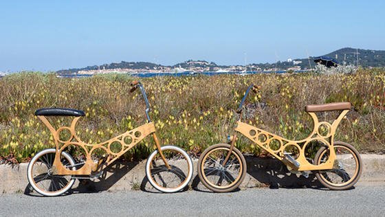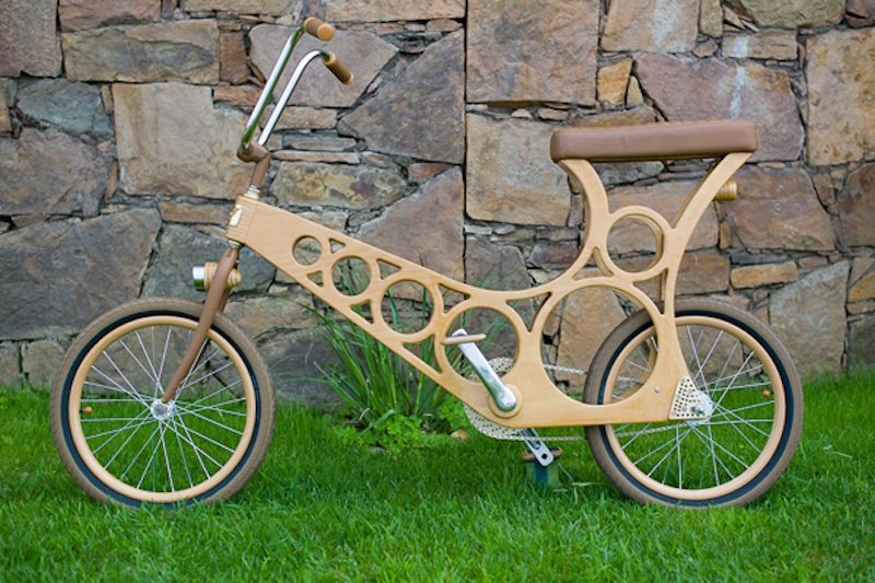 Wooden Widgets, spezialisiert auf Baupläne für Boote, hat jetzt ein Zweirad entwickelt, dessen Rahmen aus Sperrholz besteht. Es bietet Platz für zwei Personen. Mit 14 kg ist es nicht schwerer als ein konventionelles Tourenrad.