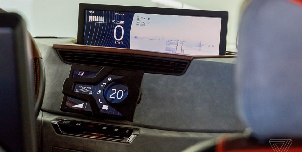 Für Sicherheit und gutes Handling beim Fahren sorgt der inzwischen schon fast gewöhnliche Touchscreen, der sich in der Mitte der Armaturen zwischen Fahrer und Beifahrer befindet. Darüber gibt es eine ausklappbare Maske, die ebenfalls als Projektionsfläche oder Bildschirm genutzt werden kann – beispielsweise dann, wenn im Wagen gearbeitet wird oder Jugendliche das Auto als Filmraum mit Freunden nutzen wollen.