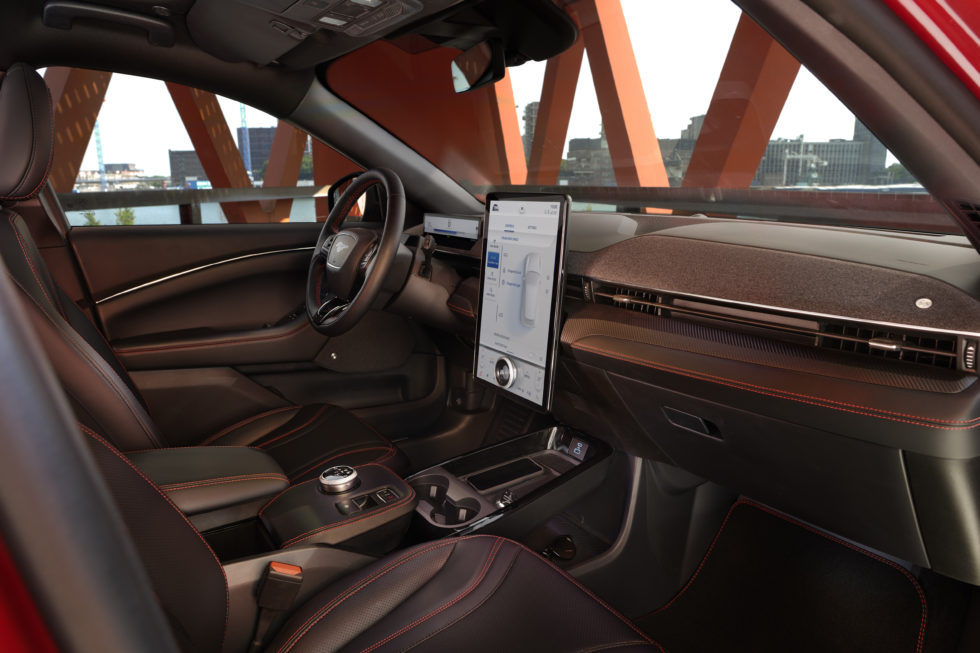 Im Mustang Mach-E befindet sich die vierte und neueste Generation des Kommunikations- und Entertainmentsystems Ford SYNC. Es bietet doppelt so hohe Rechnergeschwindigkeit im Vergleich zur vorherigen Version. Der Zugriff auf Navigations-, Musik- und Konnektivitätsfunktionen ist also deutlich schneller. Die Benutzeroberfläche ist lernfähig und kann sich auf die speziellen Vorlieben eines Fahrers einstellen. Updates erreichen das Auto kabellos per sicherer OTA-Datenübertragung. Über den Touchscreen lassen sich die 80 Fahrzeugfunktionen einfach und leicht einstellen – von der Innenraumtemperatur bis zur Sitzposition.