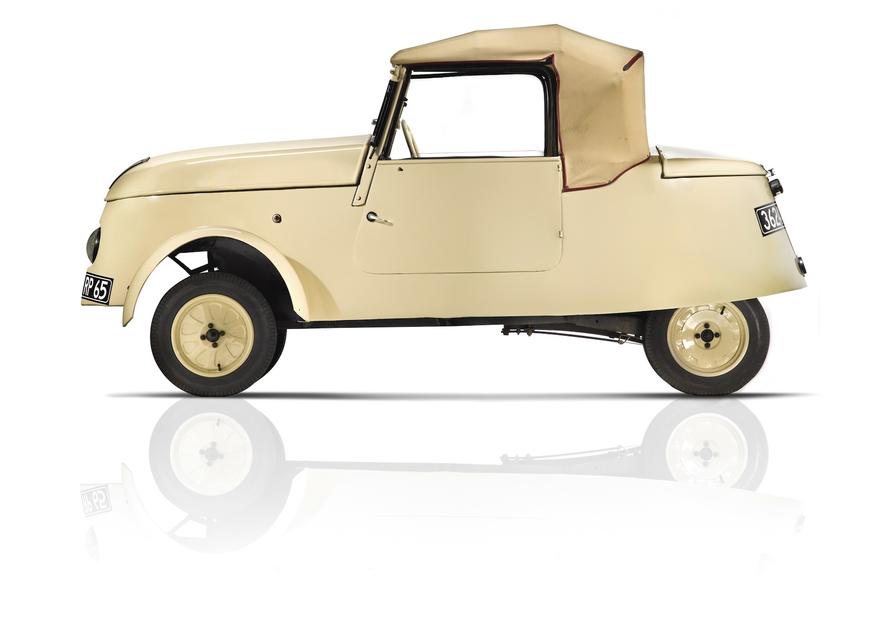 Das Voiture Légère de Ville, kurz VLV, ist bis heute ein Blickfang. Es wirkt wie ein Boot, vorne breiter Radstand und nur ein Scheinwerfer – das spart Strom – hinten schmal. Das legere Stadtauto ist dem Zweiten Weltkrieg geschuldet, als Benzin von den deutschen Besatzern rationiert wird und Autohersteller nach alternativen Antrieben suchen.