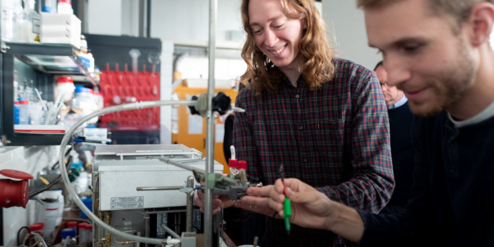 Die Wissenschaftler arbeiten an einer elektrochemischen Zelle für die Reduktion von Kohlendioxid.