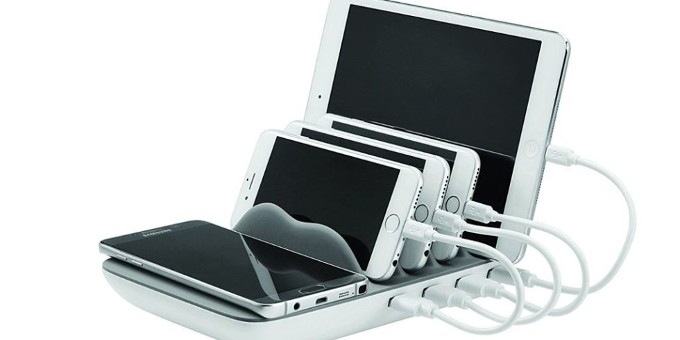 Selbst ein Single-Haushalt verfügt in der Regel über mehr als ein aufladbares USB-Gerät. Kommt dann auch noch Besuch, sind die besten Plätze schnell belegt. Hier schafft der Multi-Charger mit induktiver Qi-Ladefläche von ValueTalks Abhilfe. 4 USB-Ports mit einer gesamten maximalen Ausgangsleistung von 45 Watt für allerlei Mobilgerät stehen hier zur Verfügung. Zudem kann über die induktive Qi-Ladefläche, drahtlos geladen werden. Vorausgesetzt, diese Funktion wird vom jeweiligen Gerät unterstützt. Für sicheren Halt sorgt dabei die rutschfeste Silikon-Oberfläche. Mit dabei sind jeweils 2 Ladekabel für Geräte mit Micro-USB- und Lightning-Anschluss. Das nützliche Gadget gibt es bereits ab 42,99 Euro.