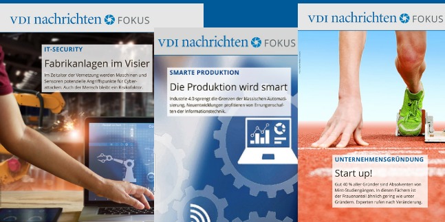 Übersichtlich, spannend, auf den Punkt: VDI nachrichten-Fokus beleuchtet umfassend aktuelle Themen, die Ingenieur*innen bewegen. Lesen Sie bestens recherchierte Artikel der VDI nachrichten-Redaktion und erhalten Sie so ein vielschichtiges Meinungsbild zum Thema. Folgende Ausgaben von VDI nachrichten-Fokus können Sie hier kostenfrei downloaden:
